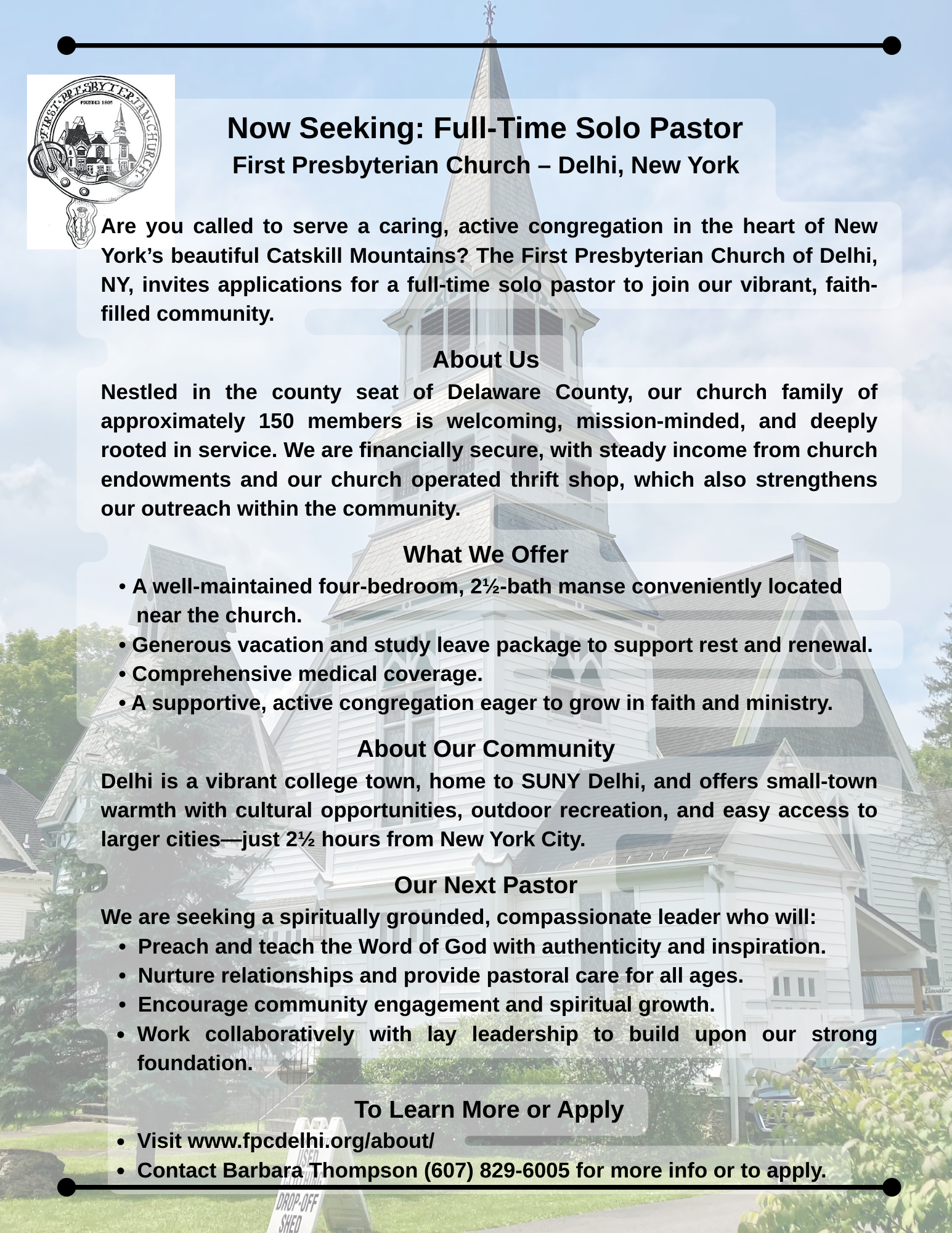 Download the First Presbyterian Church weekly Bulletin & Church Life